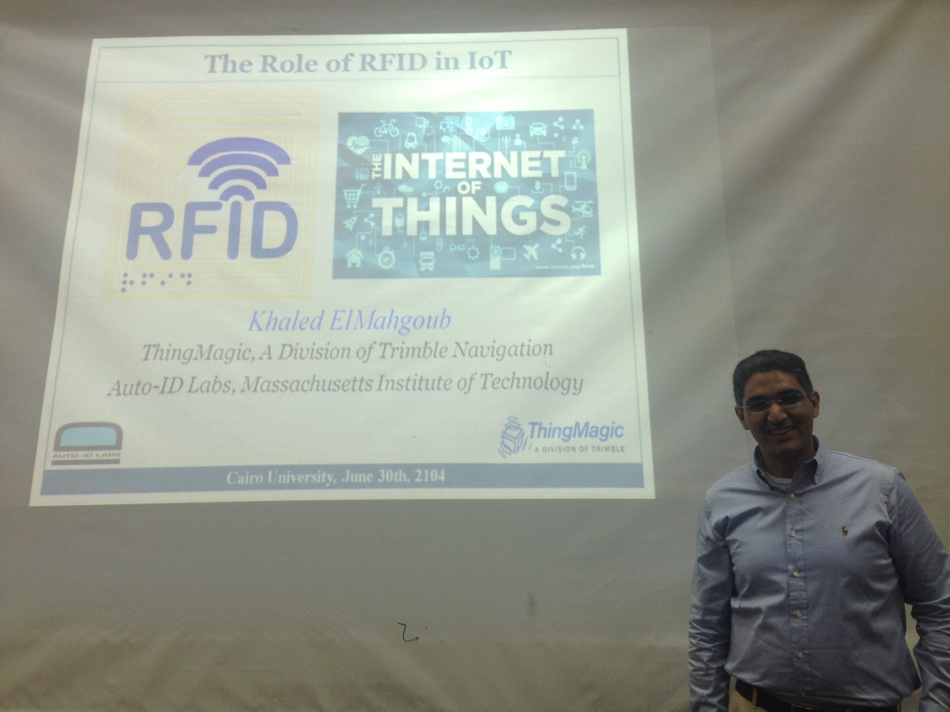 * Dr. Khaled EL-MAHGOUB - EECE Alumni 2001 & Trimble Navigation + Research Affiliate at Auto-ID Labs, Massachusetts Institute of Technology - presents a talk on "The Role of RFID in IOT" on 30th June 2014
