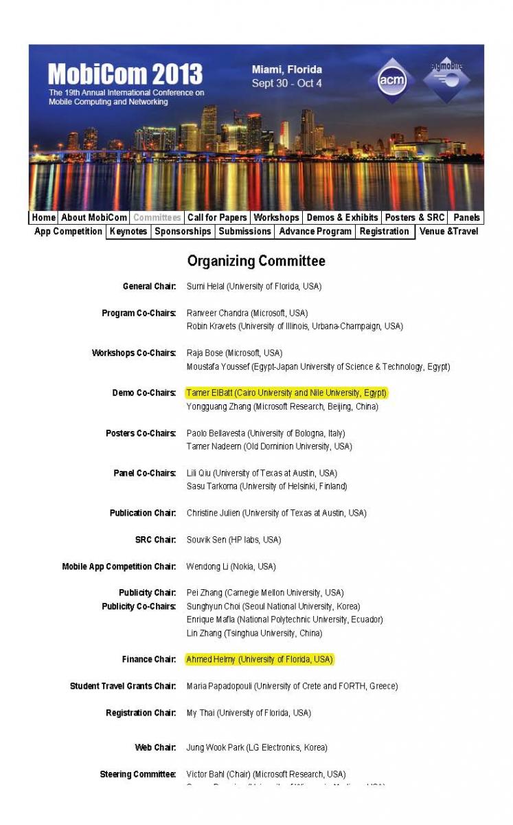 Dr. Tamer ELBATT - EECE Staff of the Computer Electronics & Communications Group - selected as Demos Co-Chair for ACM MobiCom 2013 Conference