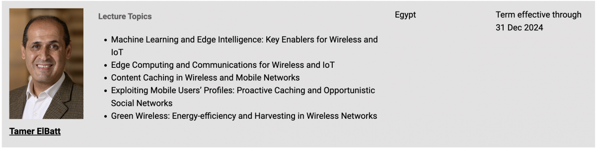 Prof. Tamer ElBatt (EECE1993) is selected as Distinguished Lecturer of IEEE Communication Society for 2023-2024
