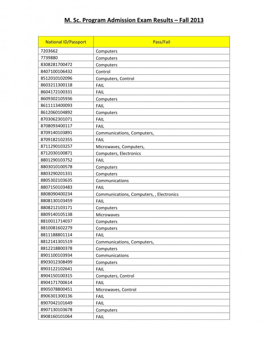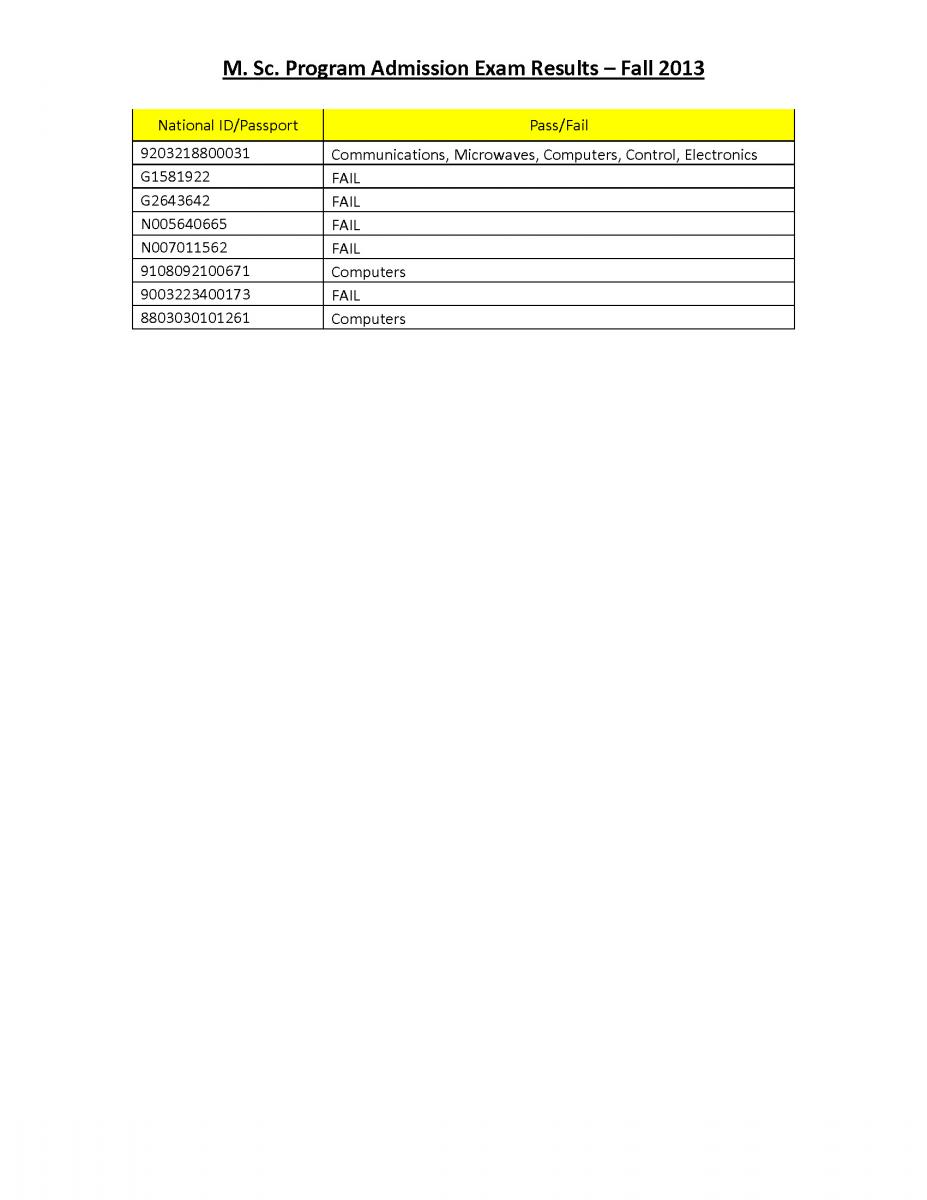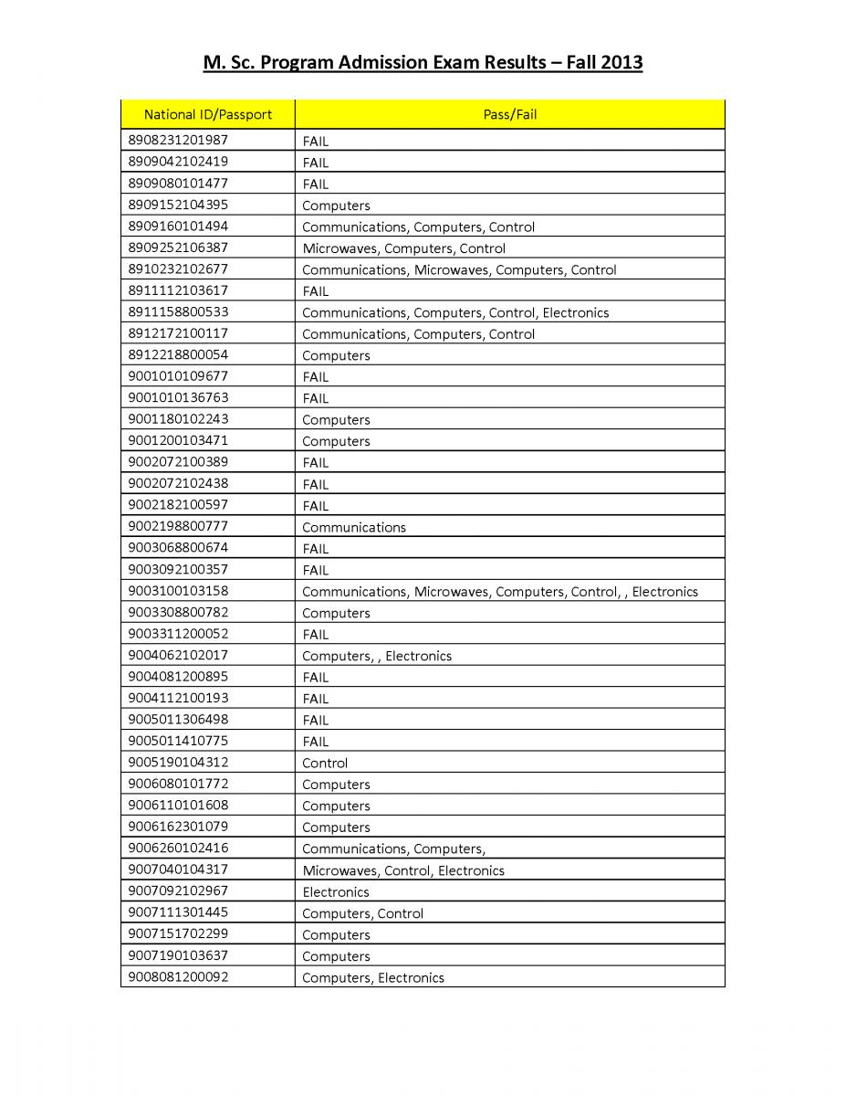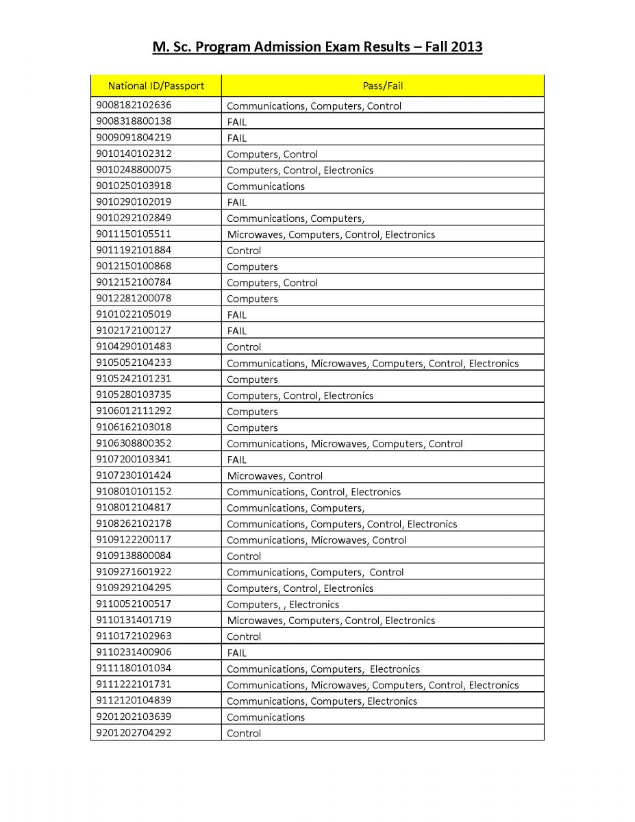 Results for the M.Sc. Admission Exam that was administered on Saturday, 7th September 2013, have been released. The list of students who have passed the exam (showing the fields they are eligible to register in) as will as those students who were not fortunate to pass the exam are listed below.