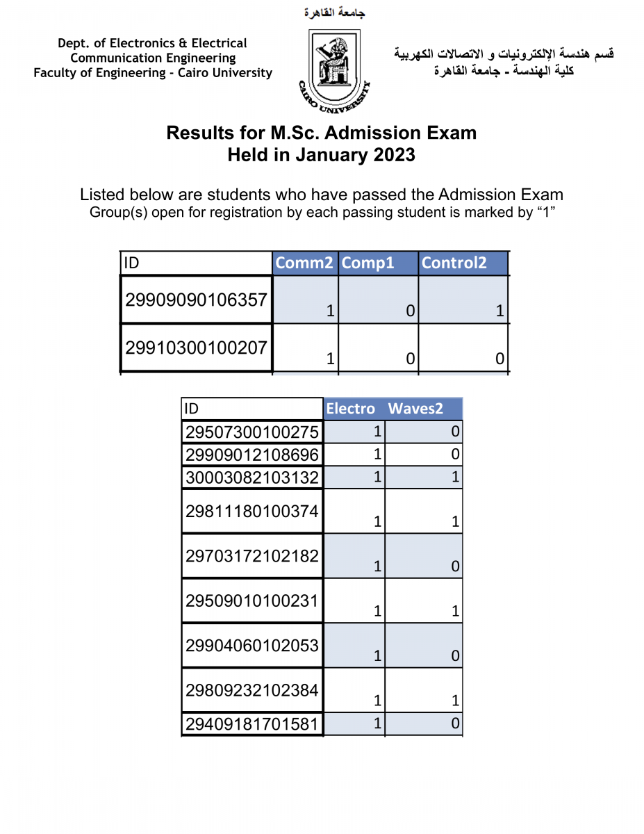 | Results for M.Sc. Admission Exam - held in January 2023 - are announced