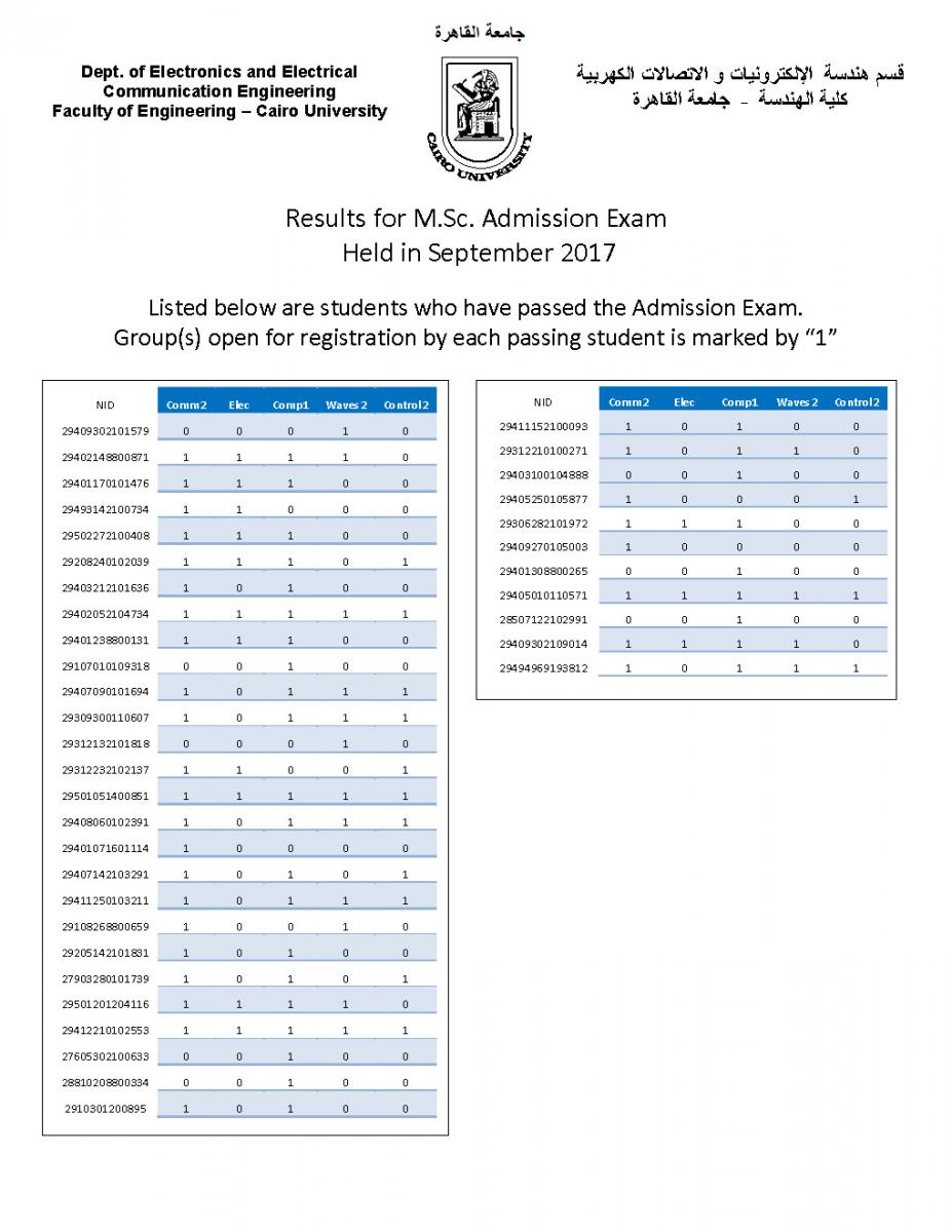| Results for M.Sc. Admission Exam - held in September 2017 - are announced