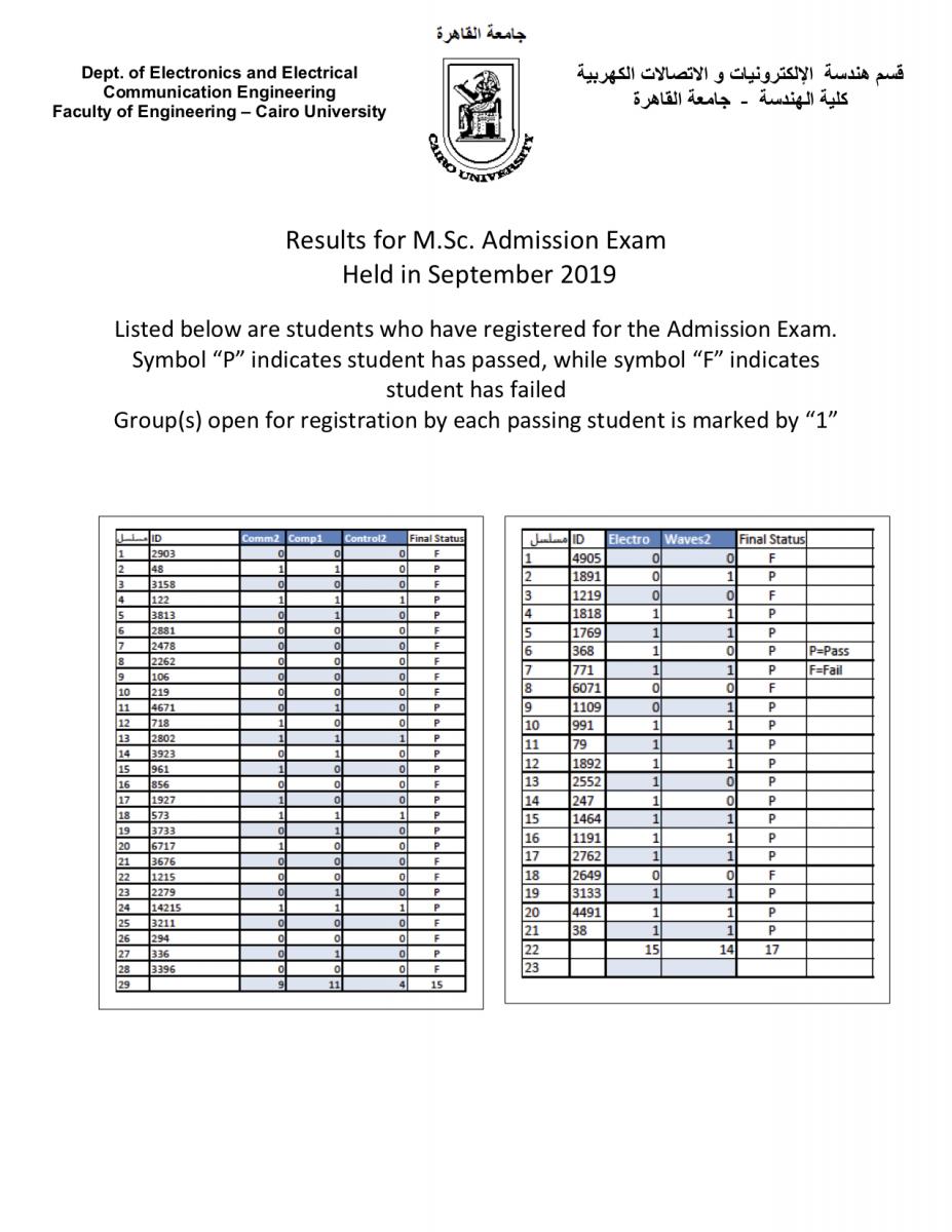 | Results for M.Sc. Admission Exam - held in September 2019 - are announced