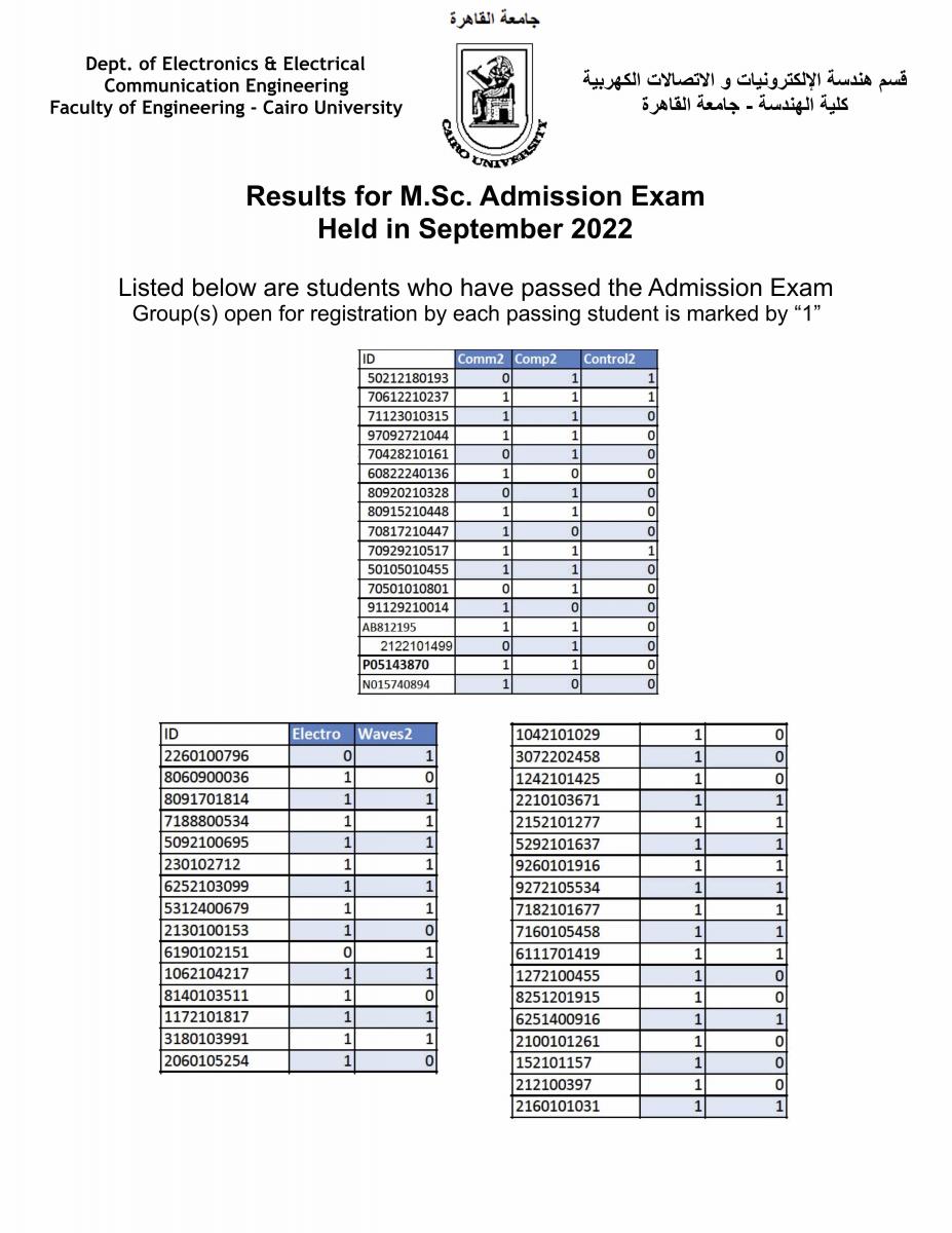 | Results for M.Sc. Admission Exam - held in September 2022 - are announced